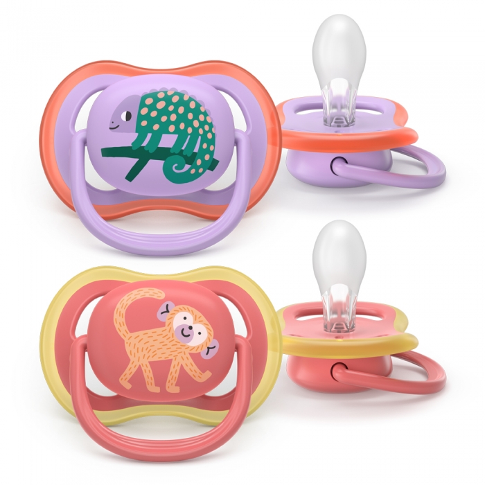 • As tetinas ortodônticas Ultra Air foram concebidas em silicone macio para apoiar o desenvolvimento oral natural, ajudando a reduzir o risco de má oclusão.