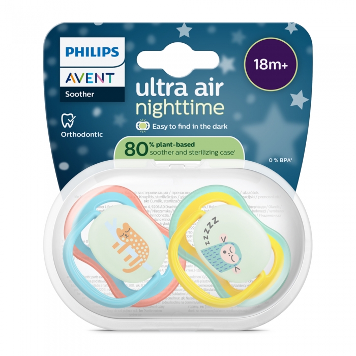 • Inclui chupeta Ulta Air 2 unidades com escudo que brilha no escuro.
