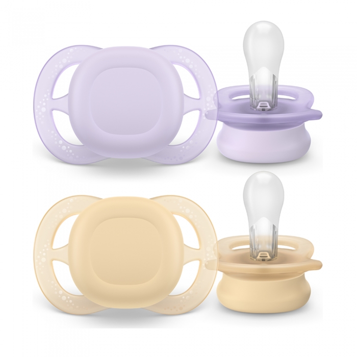 Philips AVENT 2 Chupetas Ultra Start, 0-2M - Lisa - Lilas e Amarelo