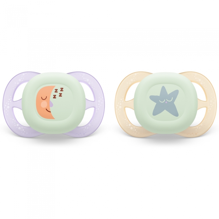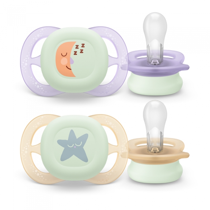 Philips Avent Ultra Start Nighttime foi concebida para se adaptar à boca dos recém-nascidos e pode ser utilizada em segurança até aos 6 meses de idade. Brilha no escuro, por isso, o conforto e o alívio são sempre fáceis de encontrar depois de as luzes se apagarem.
