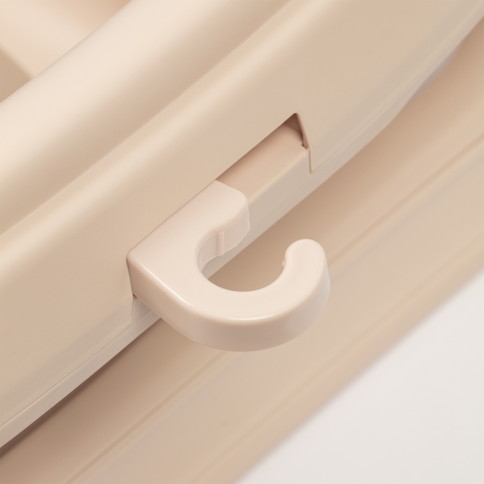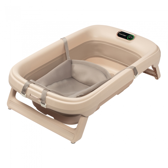 • A banheira é compacta e dobra-se na horizontal para uma fácil arrumação quando não está a ser utilizada.