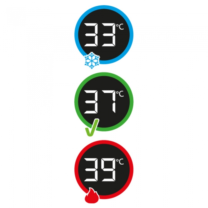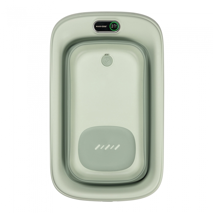 • O indicador de cor permite-lhe saber se a temperatura é segura e confortável para o seu bebé. Azul significa frio, vermelho significa quente e verde significa que está no ponto certo (35 - 38 °C).