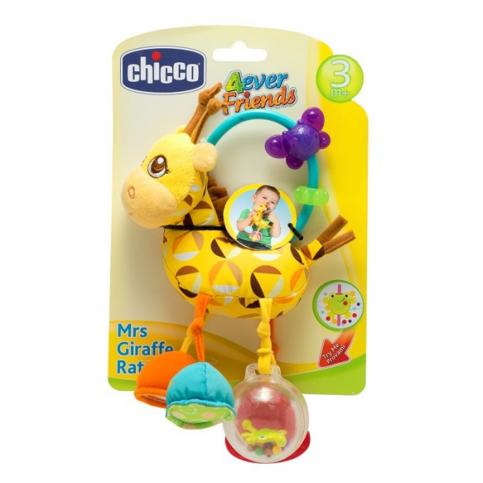 • Uma colorida e macia girafa que incentiva o desenvolvimento das capacidades tatéis do bebé.