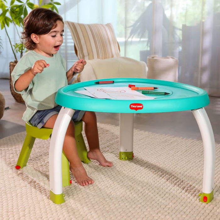 • Desde o tempo de barriga para baixo ao centro de atividades, convertendo-se numa mesa e cadeira para crianças, os 5 modos de utilização foram concebidos para estimular os mais pequenos na sua jornada de desenvolvimento desde o nascimento até aos 36 meses.