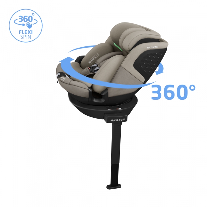 • Colocar o seu filho na cadeira auto é muito mais simples com a Emerald 360 S. Utilizando a rotação o FlexiSpin com uma mão, o assento roda 360° para que não precise de se curvar para garantir que o seu filho está posicionado corretamente na cadeira. Torna mais fácil colocar a criança com segurança antes de cada viagem, para que as dificuldades diárias com as cadeiras auto se tornem uma coisa do passado.